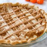 - Make Glaze: While the pie is baking or after it cools slightly, prepare the glaze by whisking together the powdered sugar and pumpkin pie spice or cinnamon. Add the vanilla extract and 1 tablespoon of milk or heavy cream, whisking until smooth. Add additional milk or cream as needed to reach a drizzle-able consistency.