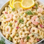 Keywords: Shrimp Macaroni Salad, shrimp pasta salad, creamy pasta salad, easy seafood salad, dill macaroni salad