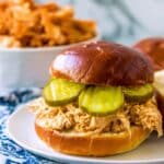 - Assemble Sandwiches: Serve the hot honey shredded chicken on hamburger buns, optionally topped with sliced pickles.