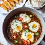 - Add eggs and cook: Reduce the heat to medium-low, crack the 4 eggs directly into the sauce, then cover the pan and cook until the eggs reach your preferred level of doneness.