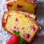Store the Strawberry Pound Cake in an airtight container at room temperature for up to 2 days. For longer storage, keep it in the refrigerator for up to one week. To enjoy, bring to room temperature, or warm slightly in the microwave. The glaze may soften in the fridge but can be refreshed with a light drizzle of powdered sugar before serving.