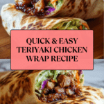 This Teriyaki Chicken Wrap recipe offers a quick and flavorful meal bursting with sweet and savory Asian-inspired flavors. Tender marinated chicken breasts are cooked to perfection and wrapped with fresh, crunchy vegetables and optional add-ons in a soft tortilla, making it an ideal lunch or light dinner option that’s both satisfying and easy to prepare.
