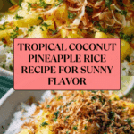 This Tropical Coconut Pineapple Rice is a fragrant and vibrant side dish that brings a taste of the islands to your table. Combining creamy coconut milk with sweet pineapple and a touch of lime makes it a perfect companion for grilled meats or a refreshing vegetarian option.