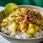This Tropical Coconut Pineapple Rice is a fragrant and vibrant side dish that brings a taste of the islands to your table. Combining creamy coconut milk with sweet pineapple and a touch of lime makes it a perfect companion for grilled meats or a refreshing vegetarian option.