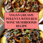 This Vegan Creamy Polenta and Red Wine Mushrooms dish is a perfect blend of comforting creaminess and rich, savory flavors. Quick enough for a weeknight dinner yet elegant enough for a special occasion, it features tender mushrooms simmered in red wine and garlic atop smooth, buttery polenta. A delightful gluten-free meal that warms you up during colder months.