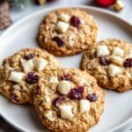Keywords: White chocolate cookies, oatmeal cookies, cranberry cookies, chewy cookies, holiday cookies, dessert recipes