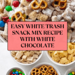 White Trash is a fun and crunchy snack mix that combines cereals, pretzels, peanuts, and colorful M&Ms, all coated in creamy white chocolate. It’s a quick no-bake treat perfect for parties, snacking, or gifting during the holidays.