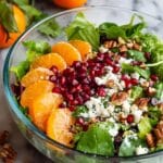 A refreshing and vibrant winter salad combining mixed greens, citrus orange segments, pomegranate seeds, creamy feta cheese, and crunchy candied pecans, tossed in a tangy and slightly sweet apple cider vinaigrette dressing. Perfect as a light lunch or a colorful side dish during the colder months.